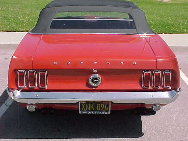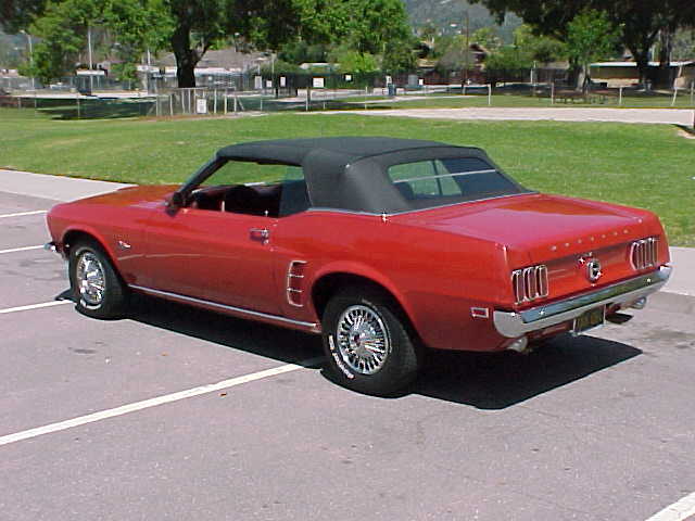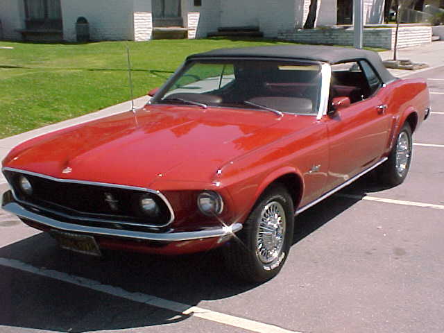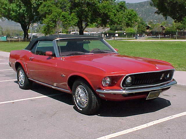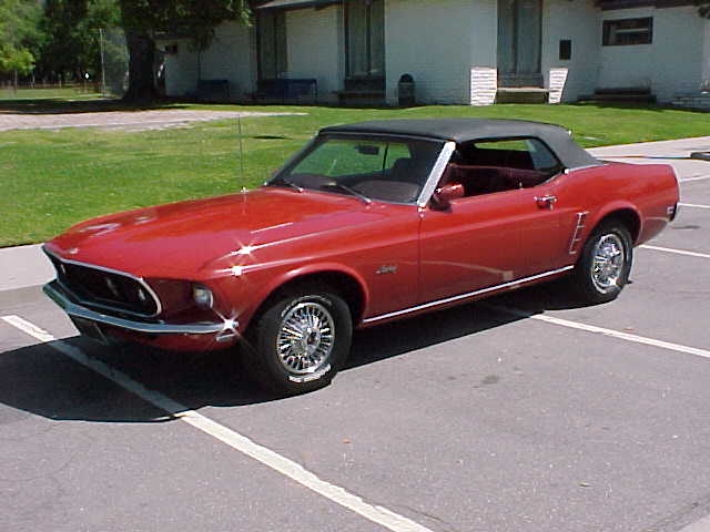 1969 Ford Mustang Convertible 302 2v V8 Auto VIN 9RO3F105631 Original F Code 302 V8 Mustang with power disc brakes, power top, manual steering with a nice older resto with Candy apple red exterior with red interior. Needs drivers front seat cover to be excellent, Original black plate Californian Mustang with a perfect body. One lower door corner has small rust spot,and very minor spot in trunk gutter. Beautiful new black convertible top and highly detailed engine bay. Top driver -engine and tranny strong. Tons of eye appeal. SOLD Car ID#194 - Return to Index |