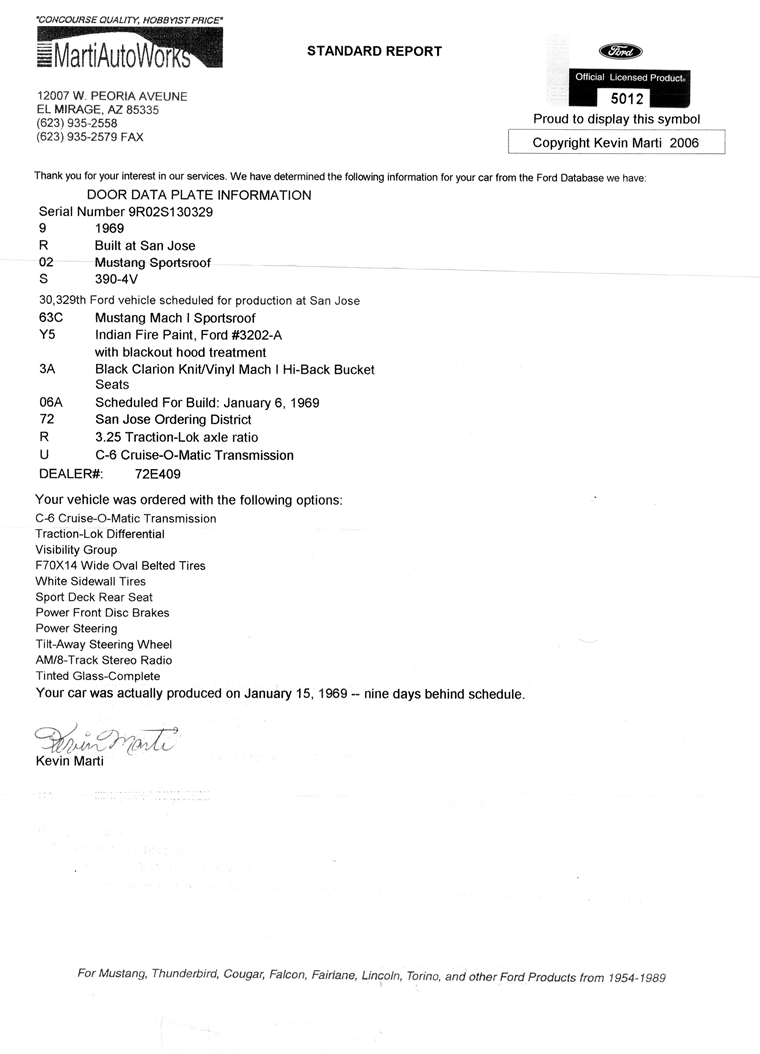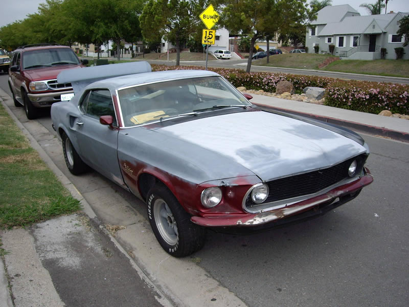 1969 Ford Mustang Fastback Mach 1 S code 390 V8 Auto VIN 9R02S130329 Original S Code Mach 1, now has small block (302 V8 ) was a C6 auto, now set up for 4 speed manual with correct pedals in place. Options include power steering, power disc brakes, and fold down rear seat. Missing console and correct steering wheel but these can be obtained if desired. Original colour Indian Fire now multi coloured, some minor rust in passenger front floor due to heater core leak, passenger rear floor has been replaced (average work here) bottom of drivers rear quarter panel has had small rust spot cut out. Restored as an S code Mach 1, this is a valuable car. See Marti Report for verification. SOLD Car ID#216 - Return to Index |