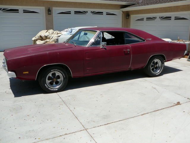 1969 Dodge Charger RT 440 V8 4 speed manual (factory) VIN XS29L9G264696 Original RT now running non -original big block, (supplied with car correct date coded 440 HP engine, rods and crank). This is a Rare RT 4 speed manual, still has correct 4 speed in car . Originally a Dana 60 posi rear but this is gone (Danas are available for approx $1000 -$1400 US). RT has power steering, working hideaway headlights, working dash clock, and correct seats, but has Mexican cloth inserts. All original panels with no major accidents, not a totally virgin car but a rare RT with manual and a top dollar car restored. Due 14 August SOLD Car ID#215 - Return to Index |