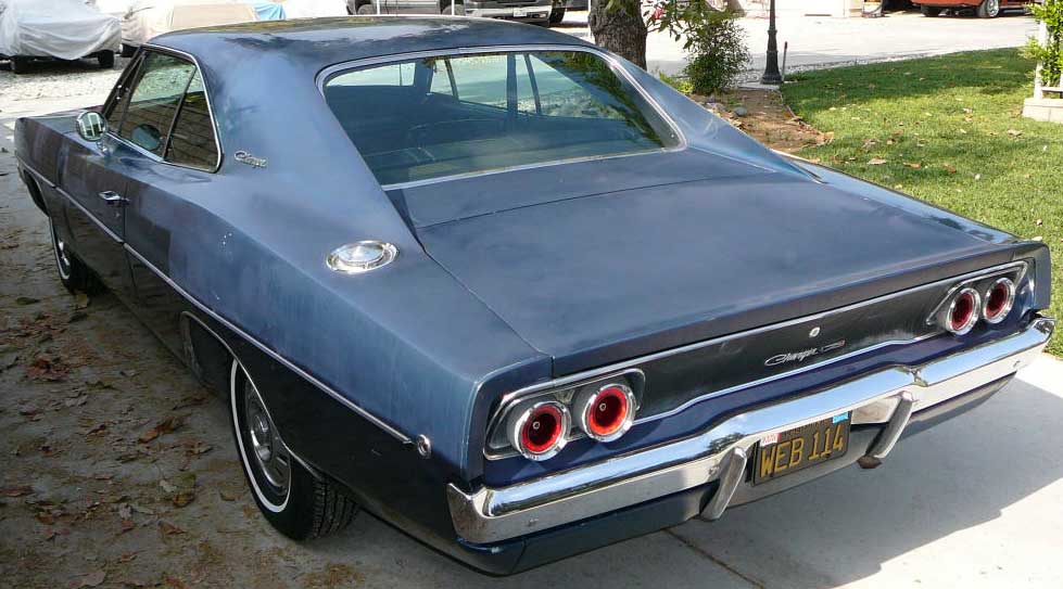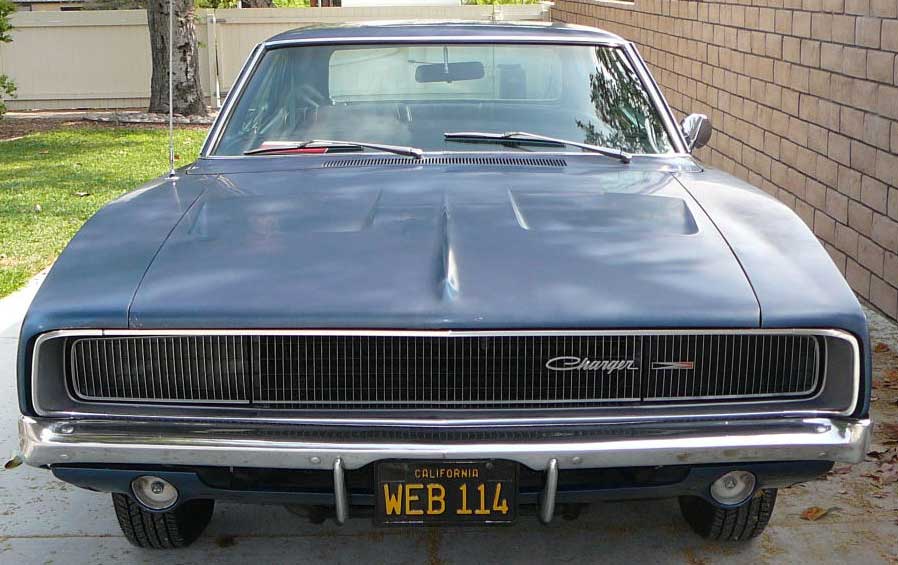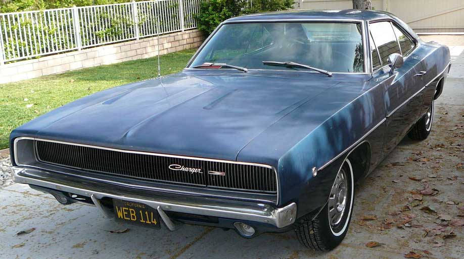 Excellent original Dark Blue Metallic Charger which has had only one repaint since new - paint is faded but the Charger is another top correct unmolested one. Superb body, only has had driver quarter skin replaced sometime in the past. Flawless original rust free Charger, that has low miles and has been well cared for its entire life by an elderly owner. Interior is in good shape with original dash in top condition. Totally original under the bonnet - car runs and drives well. Correct Black CA plates and factory hubcaps. Now have four Chargers instock - this would be the best of them - that said though, the Yellow and Green Chargers are also fine bodied cars.