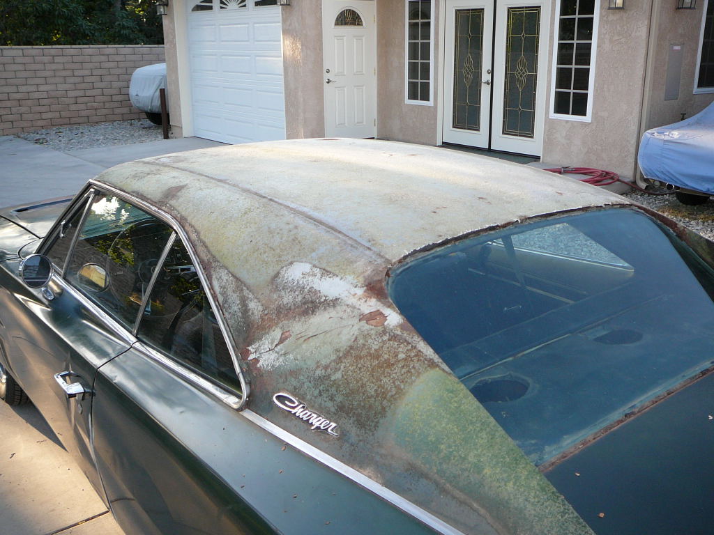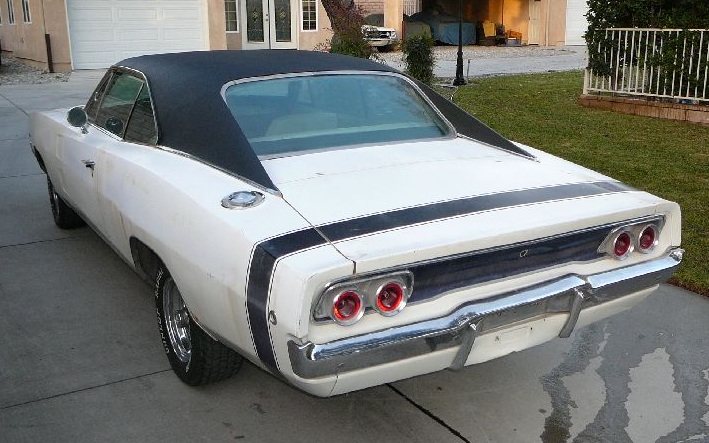 Could be driven now with brakes being redone. Original Interior was white with gold appointments. New correct black vinyl top just installed - also has new white seat vinyl and foam kits just done. Charger also has new gas tank, fuel pump and carby. Top Charger to restore - difficult to find loaded unmolested cars