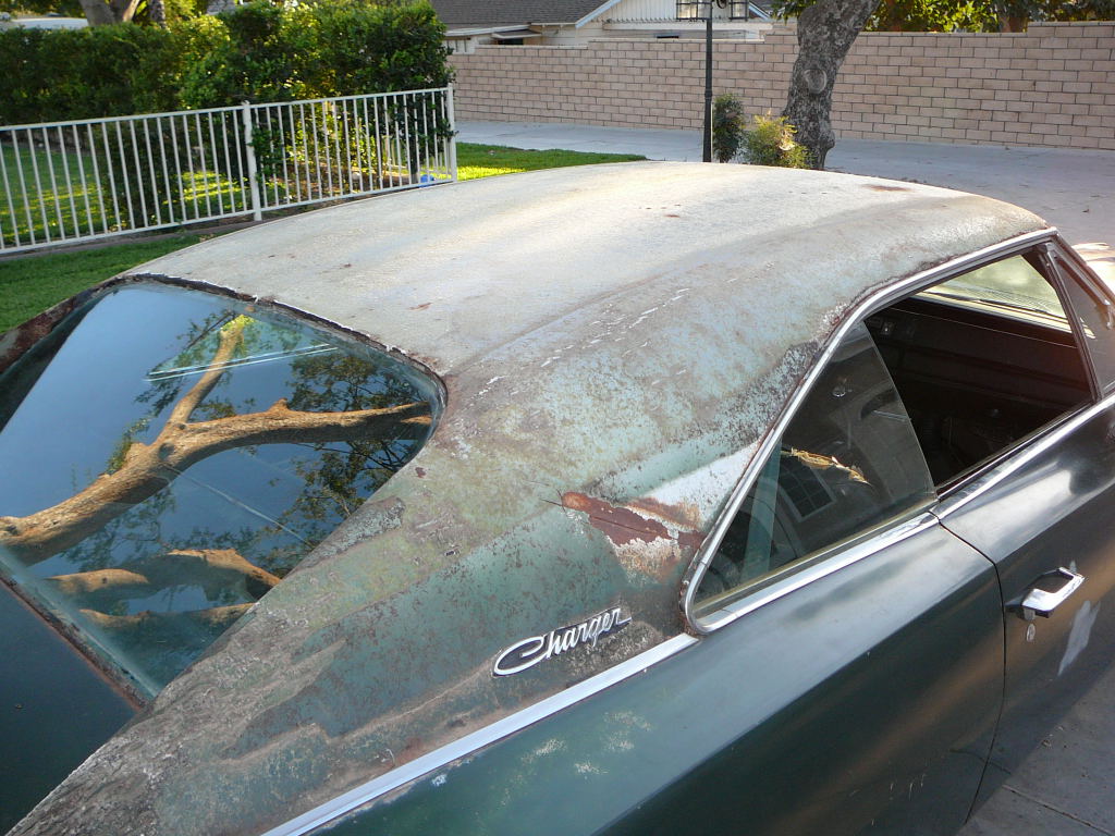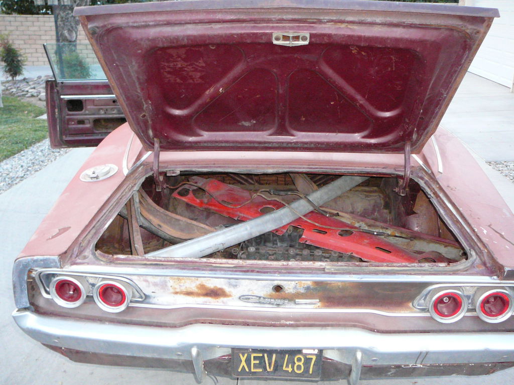 This Charger is better than it looks and is a genuine Black Plate Californian Charger not a back east hillbilly rust bucket. Charger has all original panels and has never had a major accident. Interior floors are excellent except for passenger front which has rust probably due to heater core leak. Trunk floor has rust but no major holes. Left hand quarter has had a repair and right hand quarter needs a patch due to rust. Very solid bodied Charger which has never been repainted in jambs or trunk. Under the hood it is all original except for wrong booster and master cyclinder. Options include factory air conditioning with all A/C components under dash complete.. Charger also has power steering and bucket seats and centre console. Windows are tinted glass. Note under the mexican upholstery still reside the original bucket seats. Engine and trans are missing but there are a few items in the boot that belong to this car -- Inlet manifold, exhaust manifolds, water pump, tailshaft and heads.