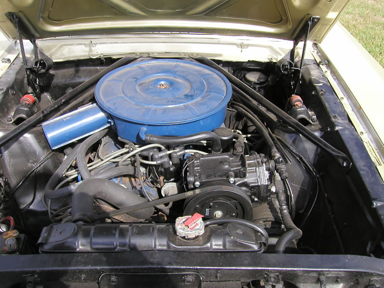 1966 Ford Mustang Fastback V8 289 2V Auto VIN 6R09C156964 Original C code (2V) with new Edelbrock carby and 4V intake upgrade. Factory manual trans was a 3 speed but now upgraded to 4 speed top loader with Hurst Comp shifter assembly. Options