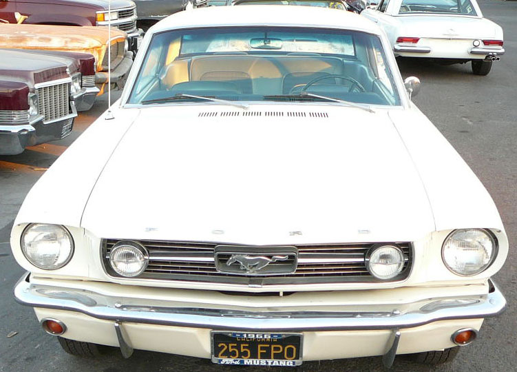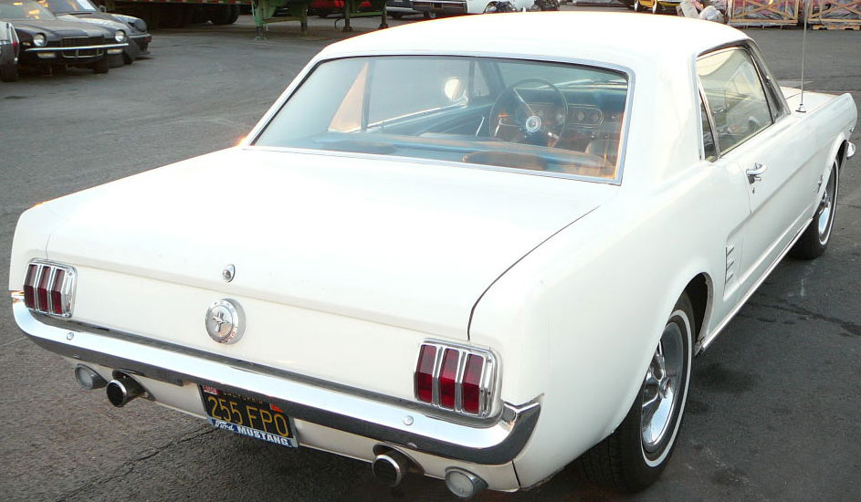 Very clean coupe with all original body panels - has had a radiator support replaced some time ago but a nice job. Solid rust free car with Californian black plates. Wimbledon white exterior is quite presentable and interior also is in good shape. Mustang drives well and overall is a good example of a unmolested Mustang.