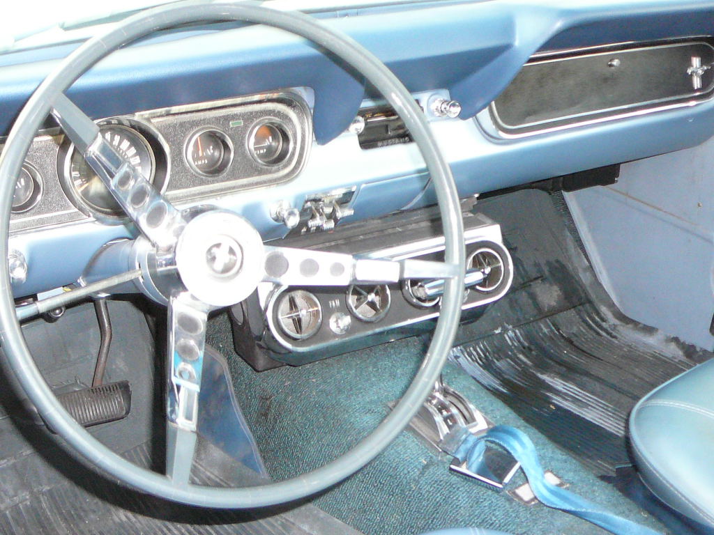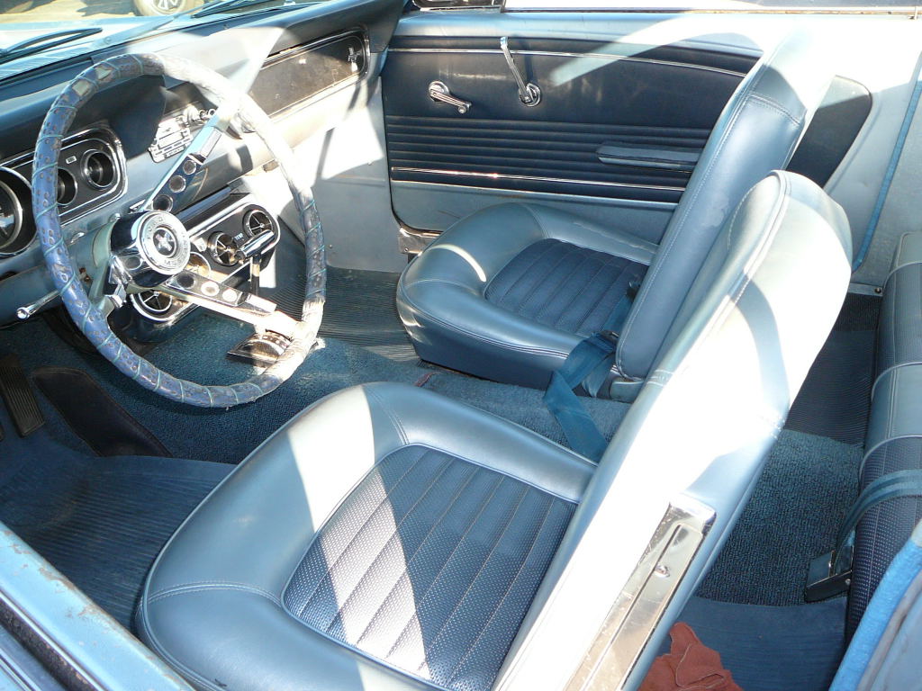 Original A code 289 V8 4V Mustang that has power steering and factory air - conditioning. Nice original driver, it is likely that speedo in this car has only turned over once. Silver blue exterior is faded but is over an excellent straight body with all original panels. Only had one repaint in same colour. Genuine black plate Californian Mustang with correct two tone interior still in top shape. No rust. Great car to buy now and drive and enjoy and paint over winter months. New correct radial tyres with white walls and no door or dash cuts.