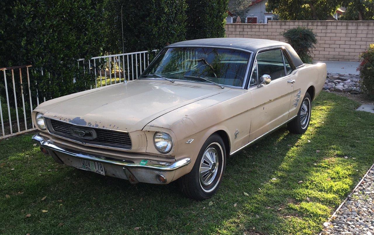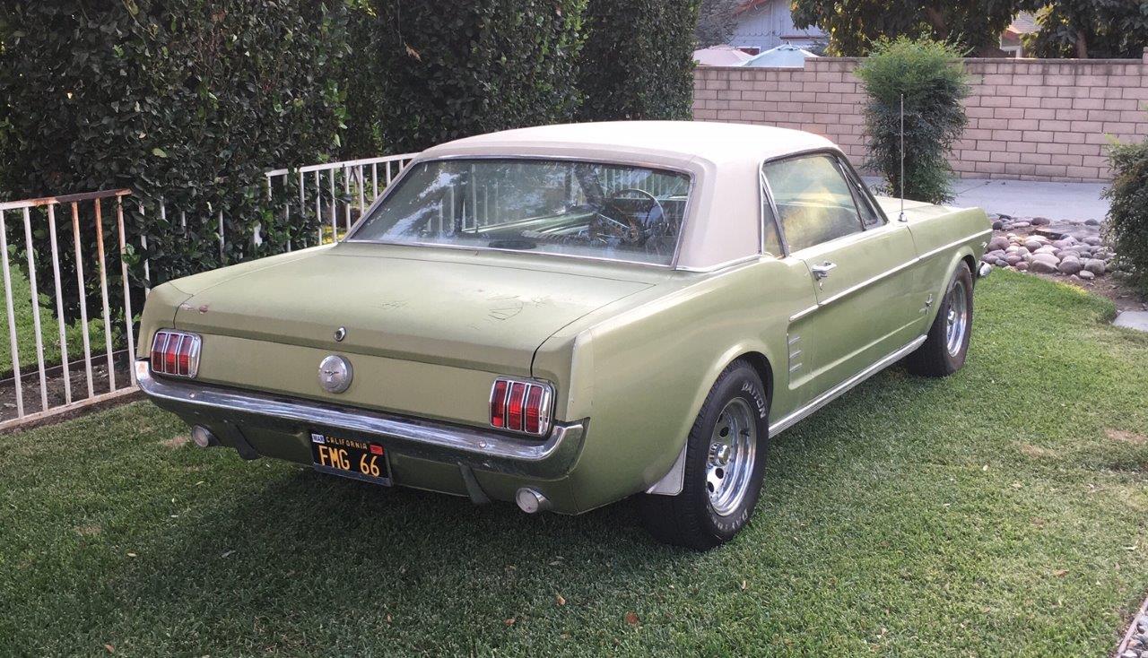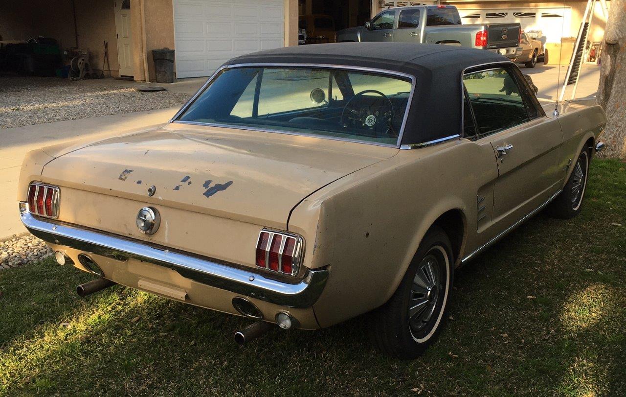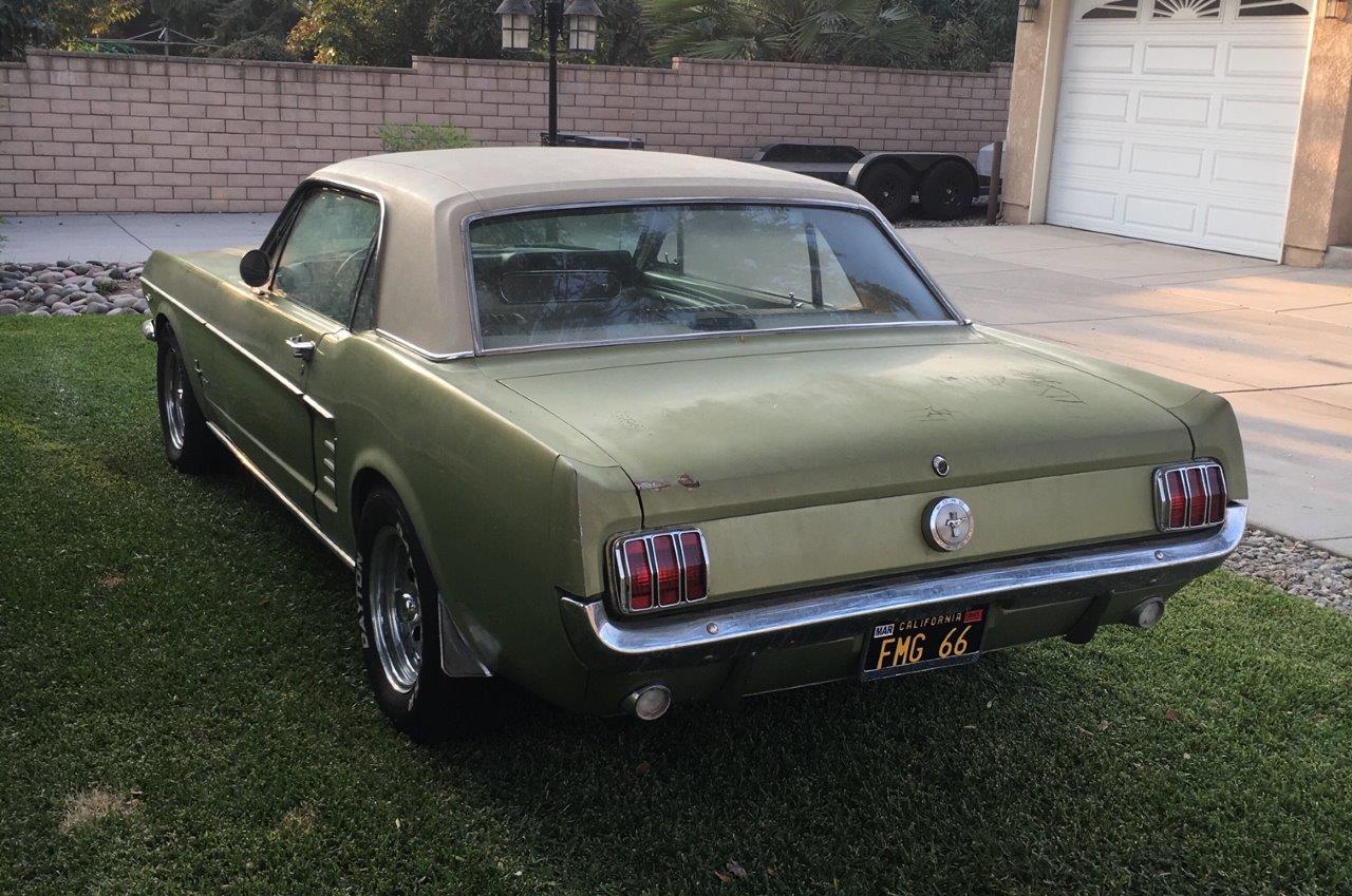 1966 Ford Mustang Coupe 289 V8 auto VIN 6T07C160162 Options 1) power steering 2) factory disc brakes : This is a 1966 Mustang coupe- project car. Equipped with the original 'C' code V8 289 2V engine, C4 auto transmission, power steering, & Kelsey factory disk brakes. Engine does fire & run ok but will need carb, tune up parts, & gaskets. Car sat for 20 years so will need full brakes & fuel system at a minimum. Car was rear ended (prior to current blue paint job) on left rear which impacted frame rail & trunk floor. Left quarter will need re skinned after proper frame pull. Right quarter decent & right frame ok. Car has some rust in rear floors, right hand rear 'C' pillar, & a few other small spots. Not a rusted out back east car since it has been in California for most of it's life, but will need some rust repair as noted. Very cheap car with good options & disk brakes for the project enthusiast. due in late september SOLD Car ID#603 - Return to Index |