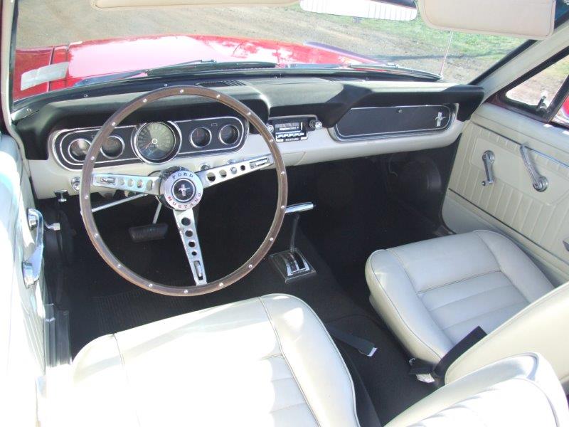 1966 Ford Mustang Coupe 289 V8 auto VIN 6F07T187783 Options include power drum brakes and front seat is buckets /bench fairly rare option.Paint is super nice and interior is all new black standard .This coupe is a T Code from factory so it started life as a 6 cylinder but is now running a V8. Body quality is excellent .Top Mustang for the money SOLD Car ID#571 - Return to Index |