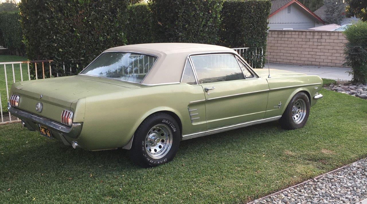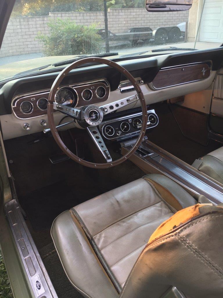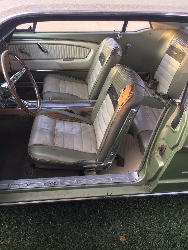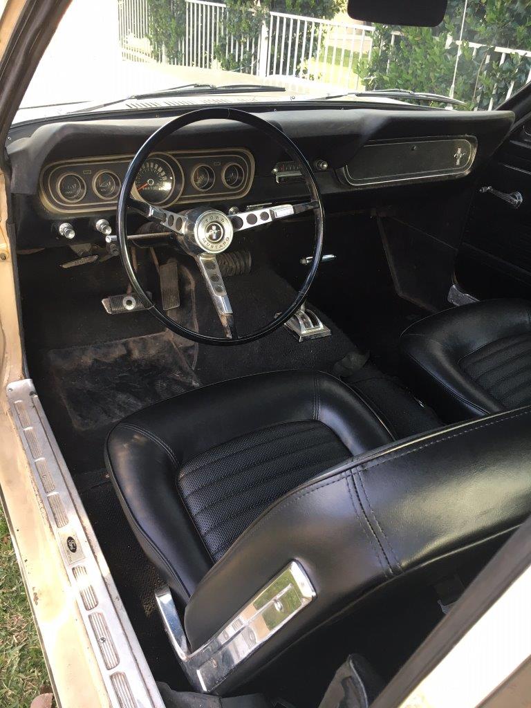 1966 Ford Mustang Coupe 289 V8 auto VIN 6F07C315528 Options include 1) power steering 2) pony interior (deluxe ) 3)� centre console 4) factory air conditioning 5) vinyl top Originally Dark Ivy Green exterior with 2 tone green/white Pony interior.Car was� repainted� a correct Lime Gold 1967 Mustang exterior colour.Paint is in average condition.The vinyl top is original and there are no rust issues showing with vinyl top� eg bubbles . Body is excellent with all original panels and floors .Very difficult to source top body cars out of the US -competition for these coupes is high and stock is short.� Interior is original but is showing its age . Mustang is loaded with options -see list above .has aftermarket wheels on car -the original 14 in wheels come with car for an owner that wants to put the car back to factory. Mustang was delivered 40 miles to shipper so drives OK. just had a new fuel pump fitted SOLD Car ID#584 - Return to Index |