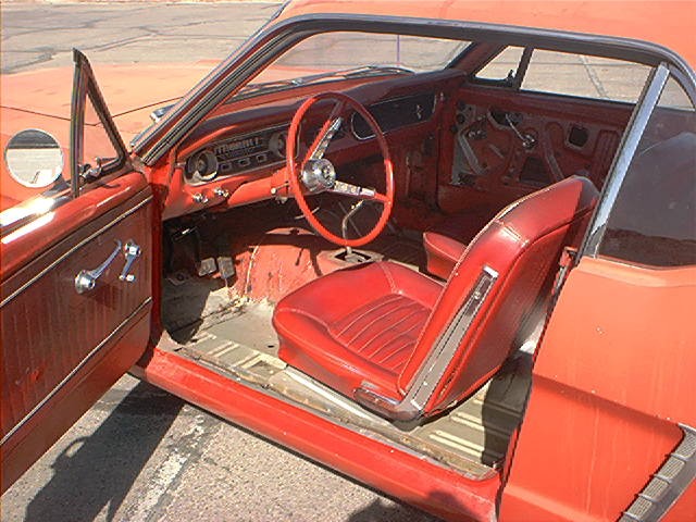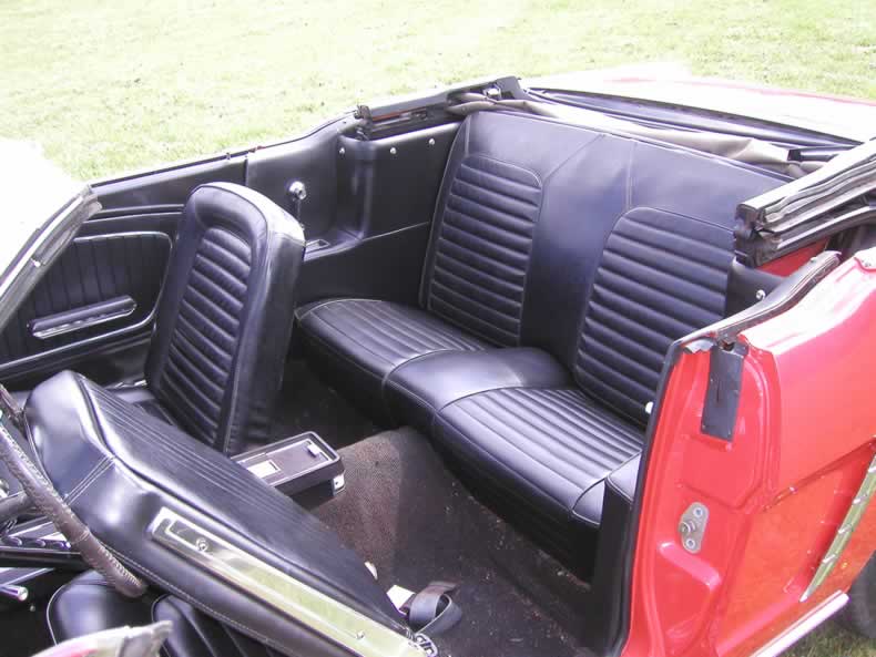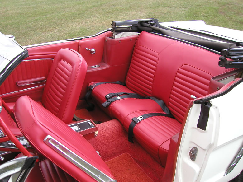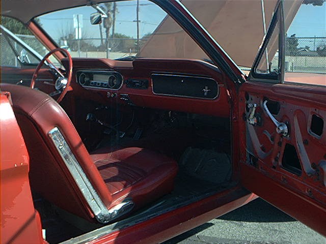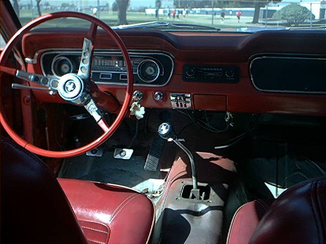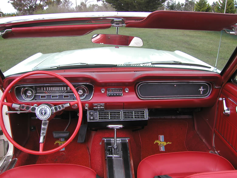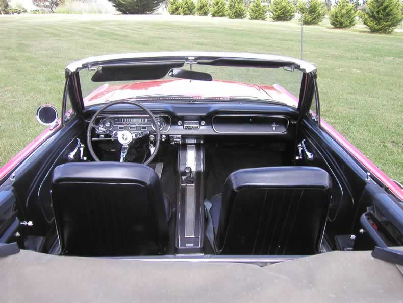 1965 Ford Mustang Convertible 289 V8 Manual VIN 5R08C128856 Original C code 289 V8 matching original 4 speed top loader - all correct linkages and reverse lockout shifter. Comes with center console and styled steel mags. Manual top only. Correct Rangoon Red exterior, nice standard black interior, original radio. Excellent example and a top driver. Super clear and straight. SOLD Car ID#75 - Return to Index |