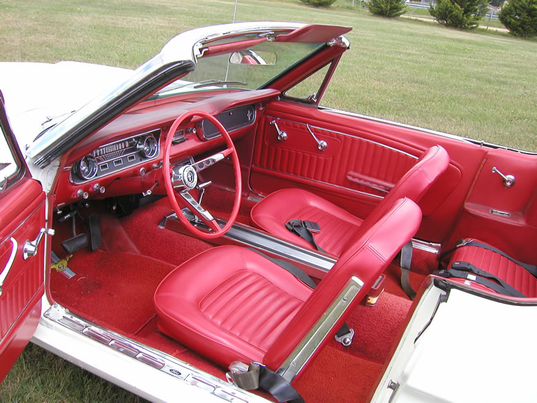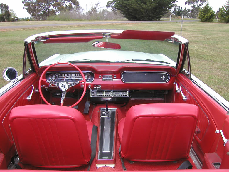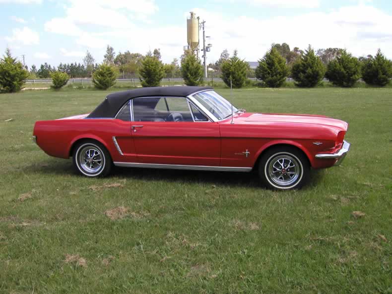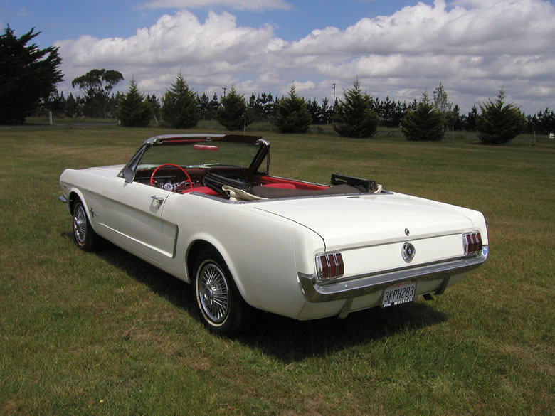 1965 Ford Mustang Convertible V8 Auto VIN 5R08C138725 Original C Code 289 2V C4 auto. Comes with power steering and factory airconditioning center console, wire wheel hub caps. Beautiful body and top condition underneath. Nice exterior with nice standard red interior. Also has power top hooded car. Top driving car that needs nothing. SOLD Car ID#82 - Return to Index |