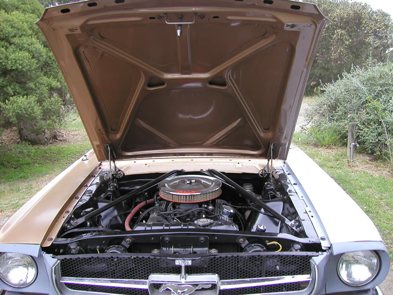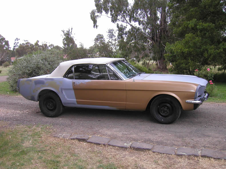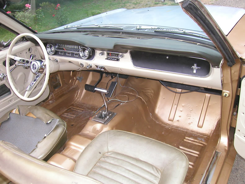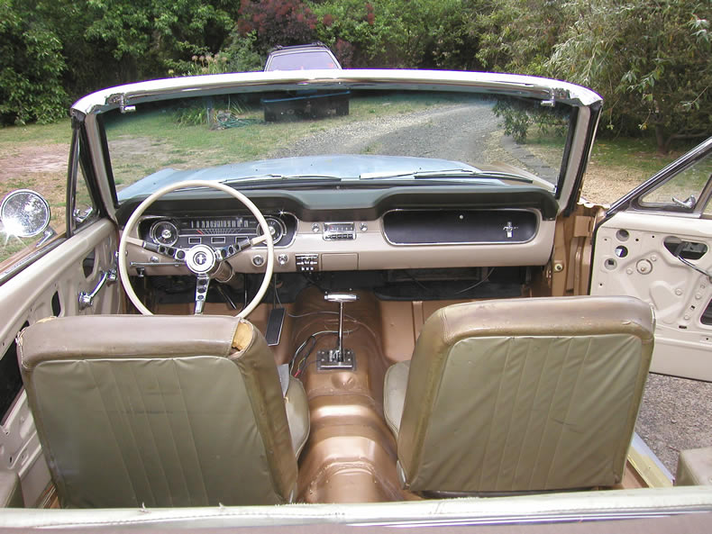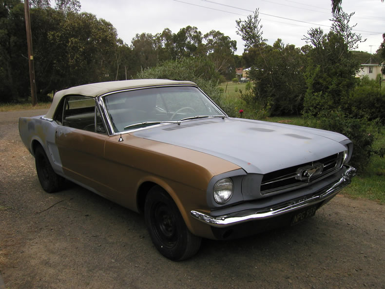 1965 Ford Mustang Convertible V8 Auto VIN 5R08A179196 Original A Code 4V V8 with highly detailed and restored engine bay. Fantastic under the bonnet. C4 Auto trans has been rebuilt. Options include power top, power steering. Dash and inside metal has been restored to purchment colour. Interior needs new soft trim. All body work has been done, top original body that has been blocked back correctly. Has one weak floor pan, left rear, all others perfect. Has new front windscreen. Easy completion if you stay with original gold. SOLD Car ID#80 - Return to Index |