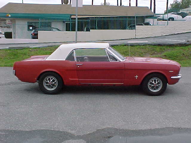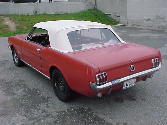 1965 Ford Mustang Convertible A code 289 V8 4V Auto VIN 5F08A275476 Original A Code V8 Mustang which has had some rust repairs to floors and quarters, but NO Structural rust ever. Very solid rust free car now, except minor trunk floor and passenger lower quarter (in front of wheel opening). Tired red exterior but many new parts just fitted. These include new white convertible top with plastic window, new door panels, new carpet, new seat covers, new dash pad. Mustang runs and drives but will need some engine work. OPTIONS