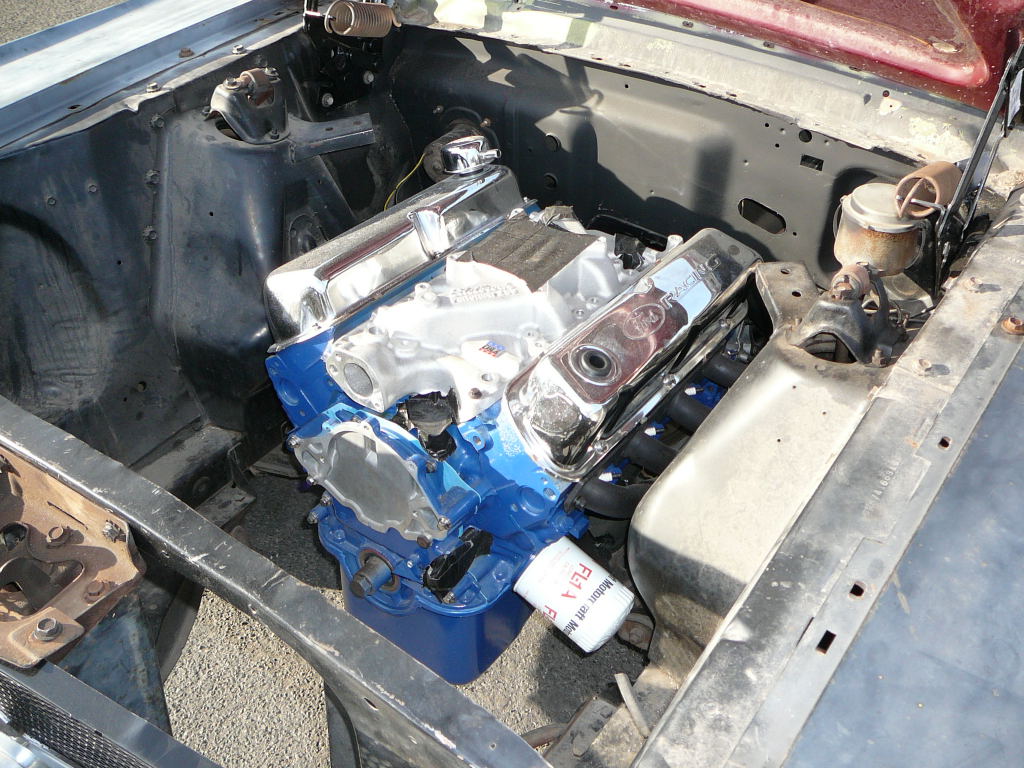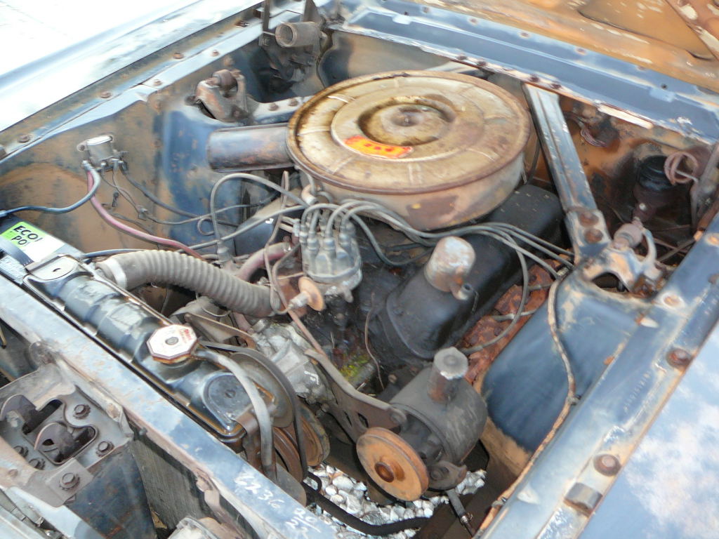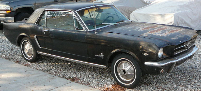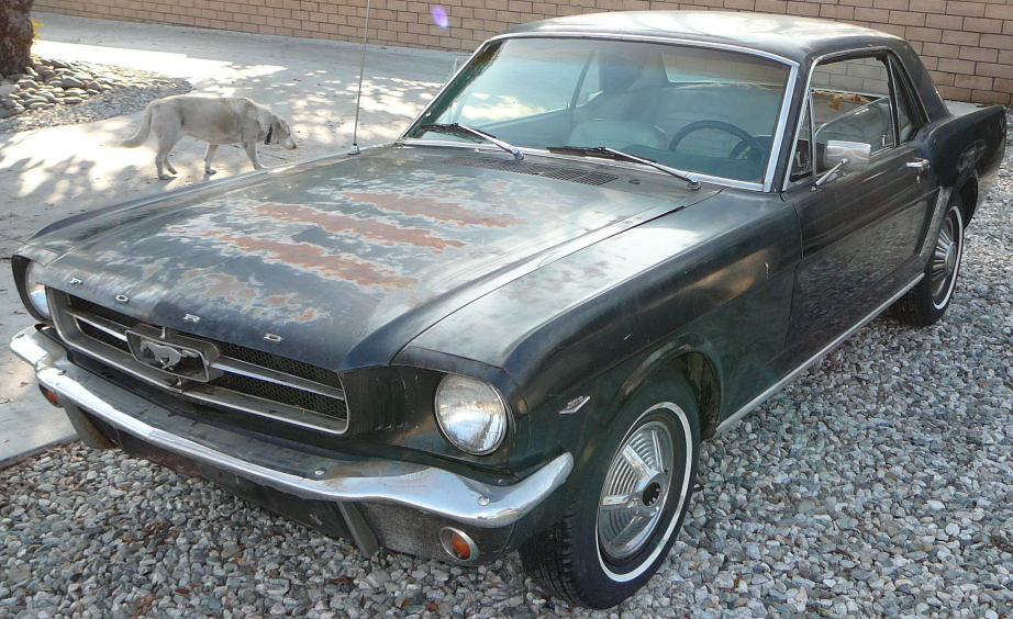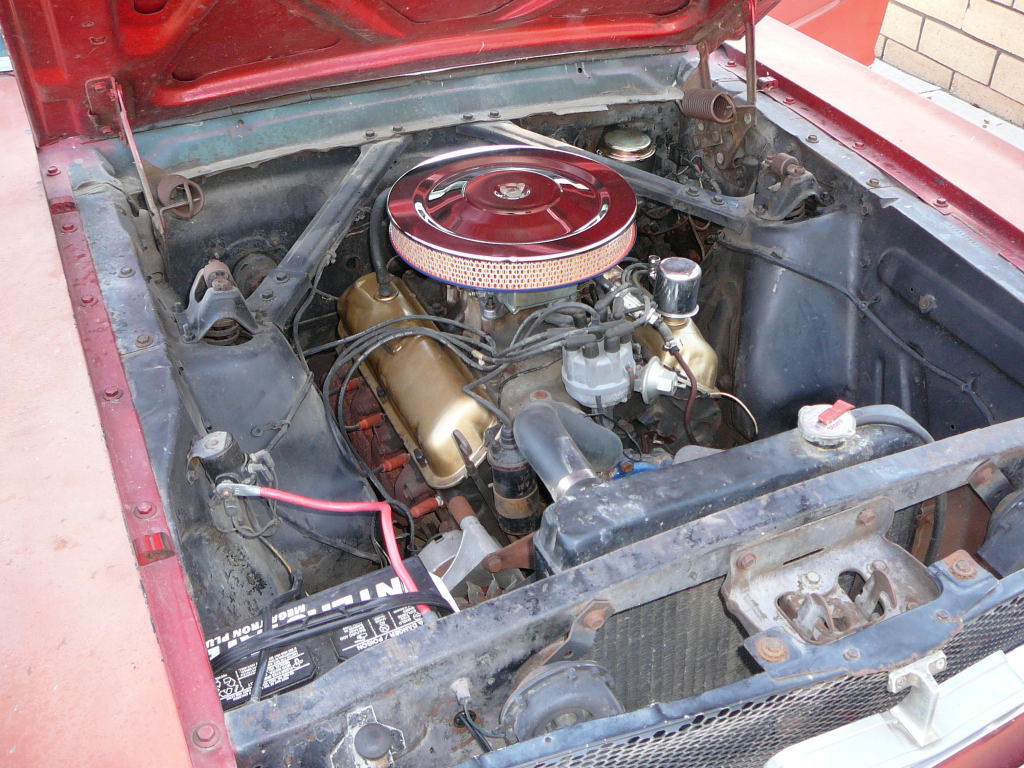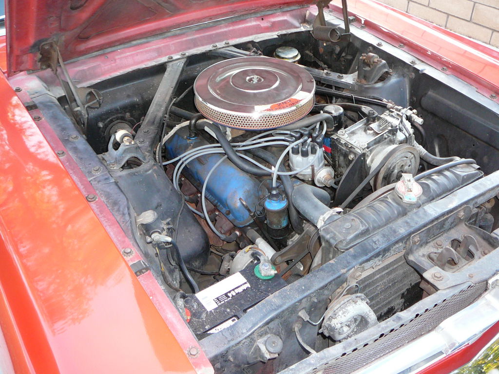 A cheap coupe for restoration. Originally a 289 V8 now has a rebuilt 302 sitting in engine bay. Mustang has Kelsey Hayes disc brakes, factory air conditioning (equipment is in boot). Also has power steering. Good solid car and fairly straight. Not a problem to restore.
