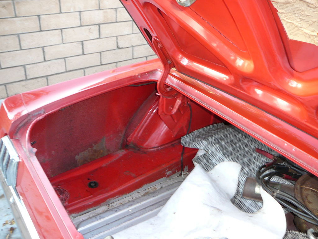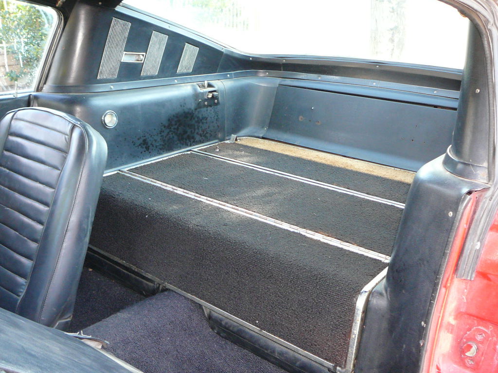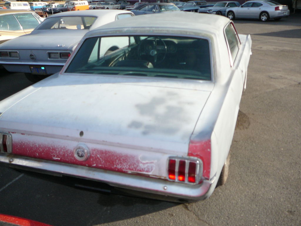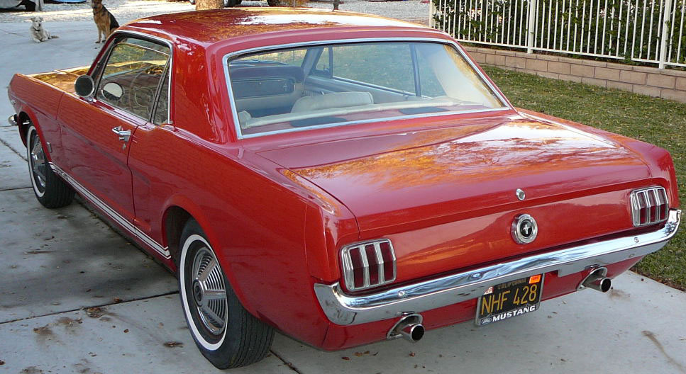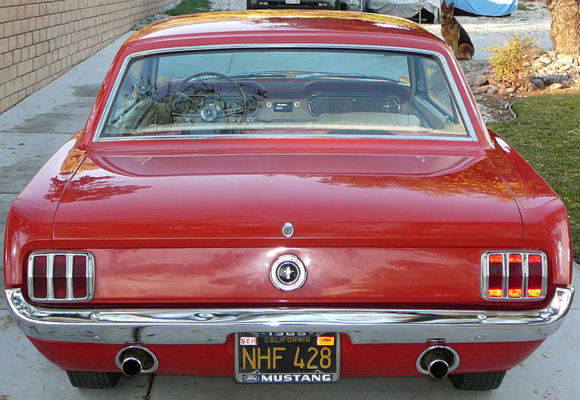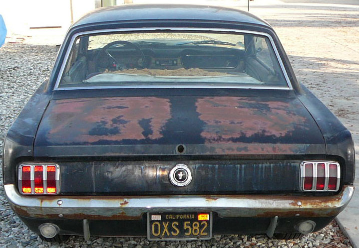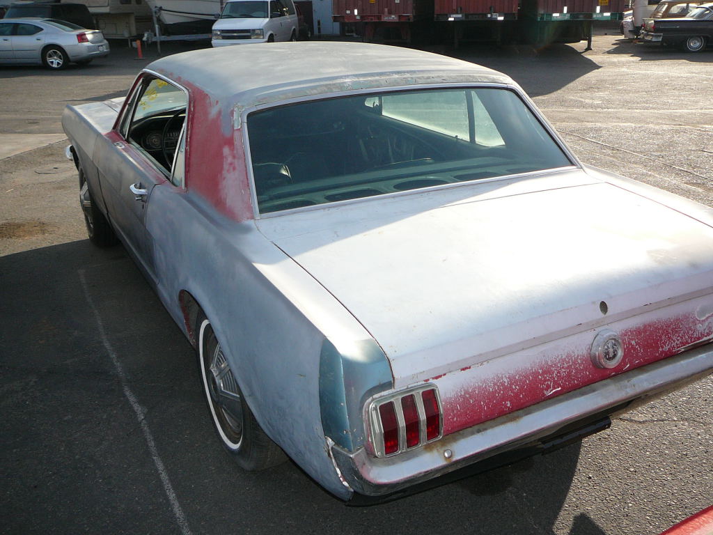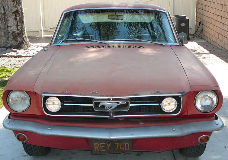 Original C code Fastback that has power steering and centre console. Nice bodied Mustang without rust or accidents. Black plate Californian car that runs and drives OK. Originally was Champagne Gold now faded Poppy Red. Original standard black interior, no radio or speaker cuts to fibreglass or dash. Fold down rear seat in VGC. Another good example of a first gen fastback.