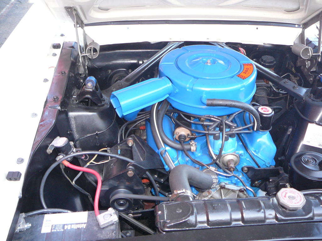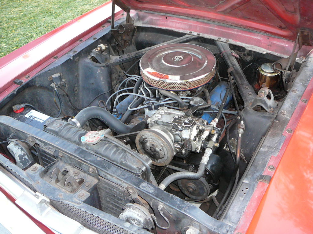 Original C Code 289 V8 that has power steering, factory air conditioning (working), original black deluxe (pony) interior with bench bucket front seats. Decent interior that needs front bench reupholstered, rebuilt 289 V8 and rebuilt trans. Mustang drives very well, and has good suspension and brakes. Original exterior colour is Vintage Burgandy, which is in reasonable shape. Very straight and rust free body with all original panels.