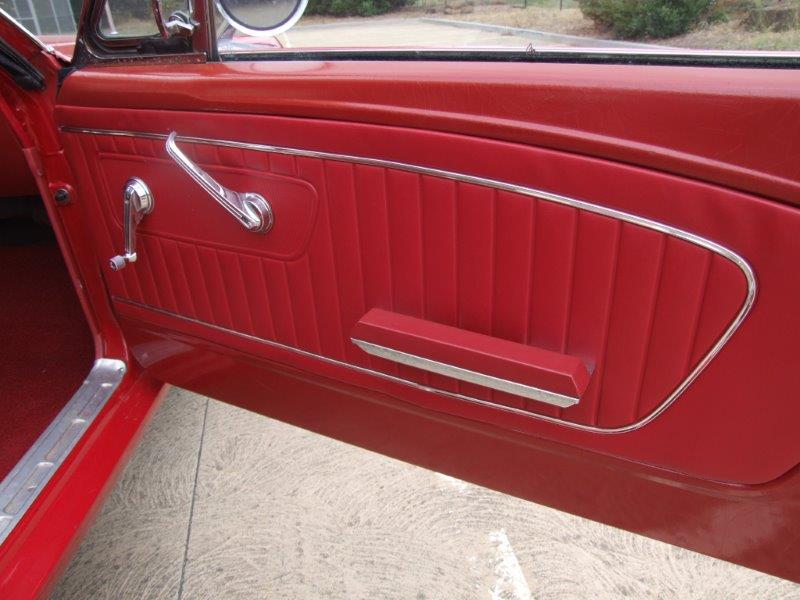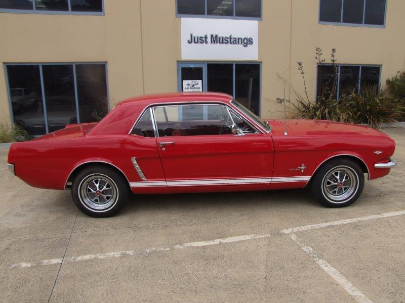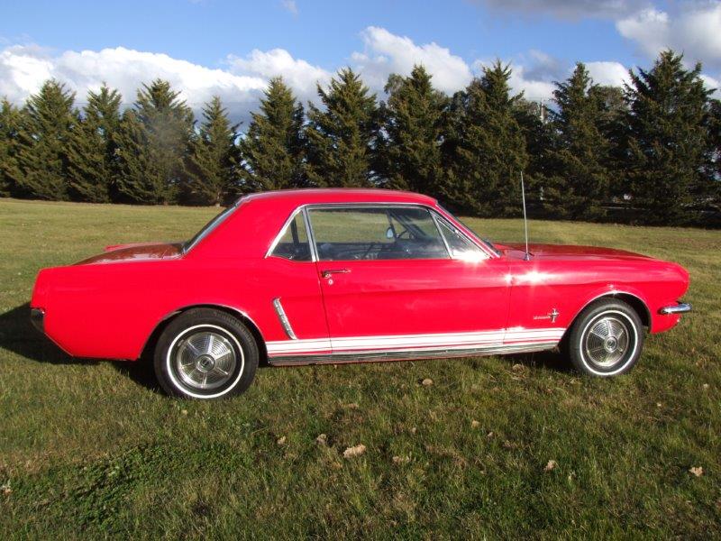 1965 Ford Mustang Coupe V8 Auto VIN 5F07F201524 This Mustang has early 1964 features so is a transition Mustang where 64 blended into 65. The Mustang is a good driving car with excellent interior and Red exterior paint > few options on car but floors and panels in very good condition.�The Mustang is sold with a Roadworthy Certificate.� Can also assist with Club /registration. In stock now. Was originally a 260 V8 now running a 289/302, SOLD Car ID#526 - Return to Index |