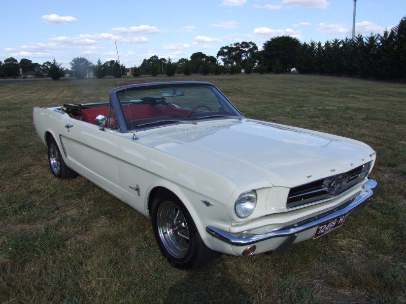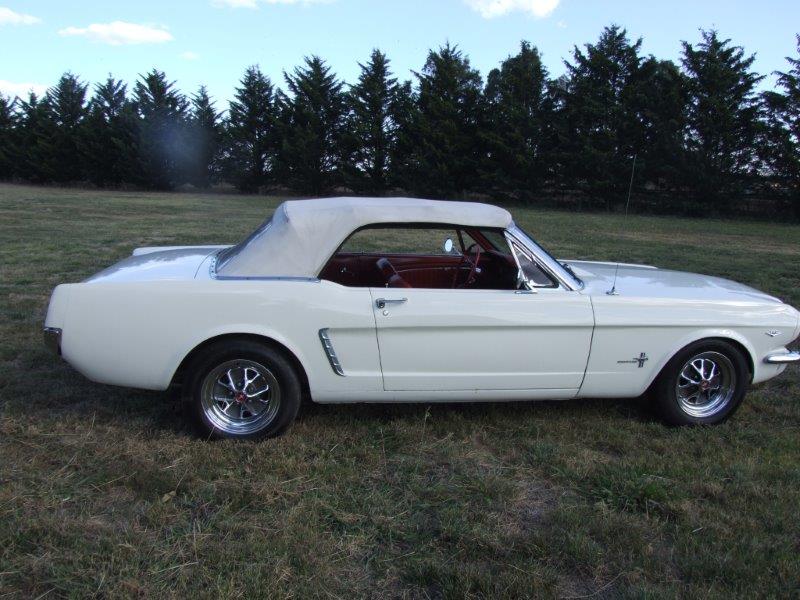 1965 Ford Mustang Convertible 289 V8 Auto VIN 5R08C138725 This convertible is an excellent daily driver and is sold with a Roadworthy Certificate .Perfect Convertible for a wedding hire business .Options include power steering , power disc brakes ,styled steel wheels . and power top . Wimbledon white with 1965 red interior one of the best combinations . Very clean convertible with excellent torque boxes and rails .Come out and buy the car and cruise home in style . SOLD Car ID#515 - Return to Index |