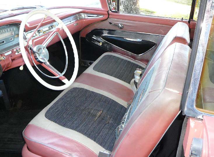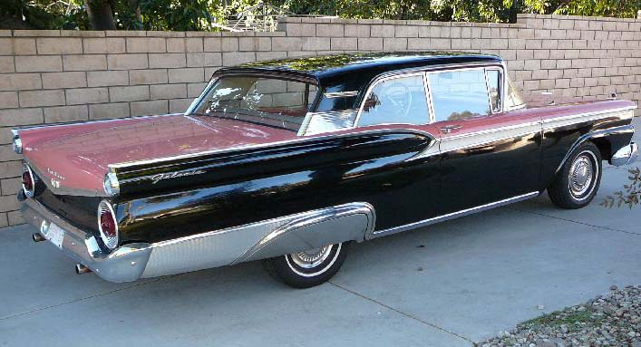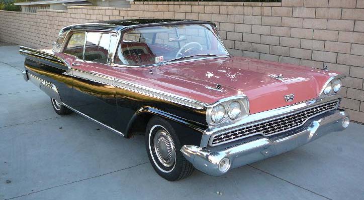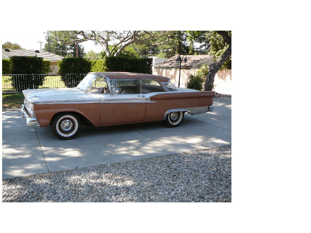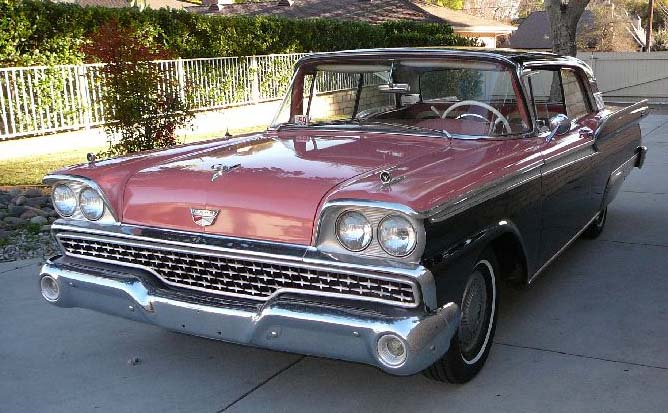 1959 Ford Fairlane 500 2 door hardtop 292 V8 Three Speed Auto VIN C9LS133247 Original 292 V8 Y Block with 3 speed cruise-o-matic auto tranny. Options include power steering and fender skirts. Super original Fairlane with older paint job -original colour was white. Salmon two tone interior is all original and has never been changed. There is some wear on the drivers seat but correct upholstery is available for this car. Body is super with no rust or accident damage. Very nice 50's driver with thousands of dollars of receipts kept by owner. Before shipping new white wall radials were fitted so this Fairlane drives smooth and straight on the road -front end alignment just done. Car starts with one click and trans shifts well -plenty of power from the engine. This is a great cruiser that can be enjoyed now. New trunk weatherstrip provided. due late feb SOLD Car ID#407 - Return to Index |