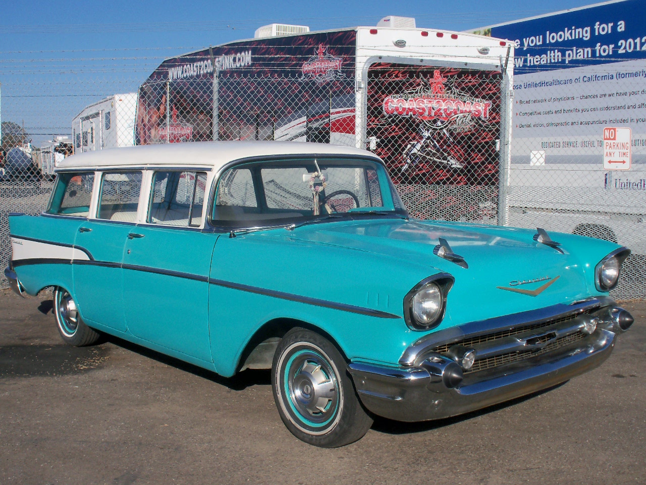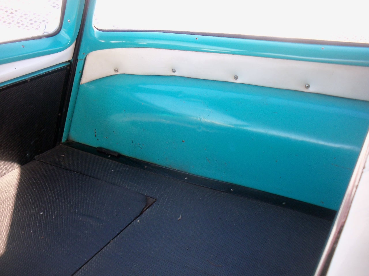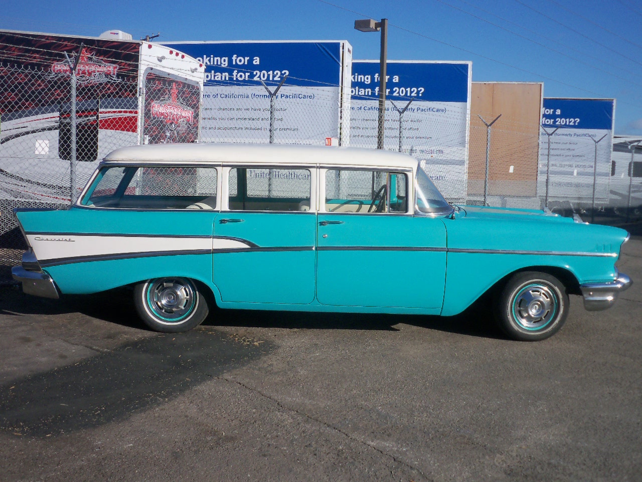 1957 Chev 210 Station Wagon 350 V8 Auto VIN VB57L127191 Here is a cool wagon for summer cruises and car runs . 1957 Chevy 210 4 door wagon has a 350 with an original Powerglide auto trans. The Chev has a very nice body, dry floors, clean under the doors, around the tailgate and wheel housings etc. The only rust which is small is around the drip moldings and a few bubbles at the bottom of the front fenders. There are a couple of scratches and a small dent on left front fender. Minor issues - paint is good for a driver car. The interior was redone approx 10 years ago but is still in nice shape - even the cargo area is clean with the original rubber mat still in car. Chevy runs fine - engine has an aluminium intake but otherwise stock. Steering wheels and guages are in good shape. Tyres are old and will need to be replaced. Rear bumper is showing its age re-chrome, side moldings are good. Glass is good. Not many of these vintage station wagons around in good driving condition at a reasonable price. SOLD Car ID#427 - Return to Index |