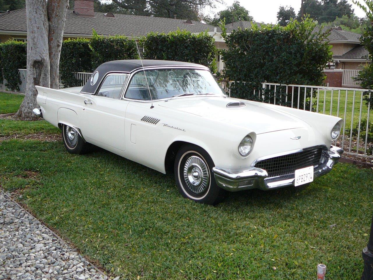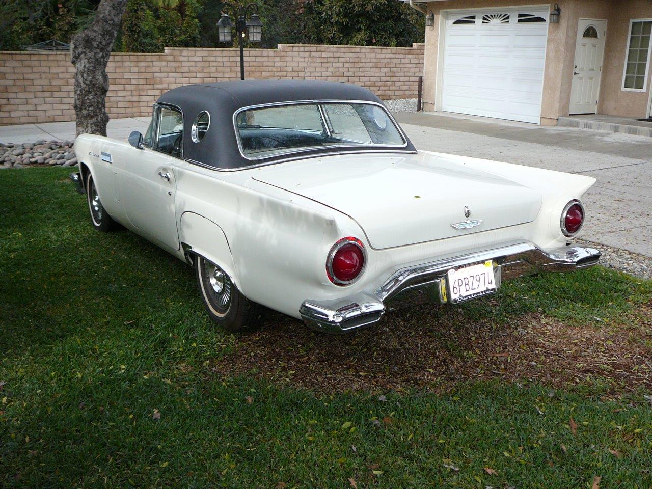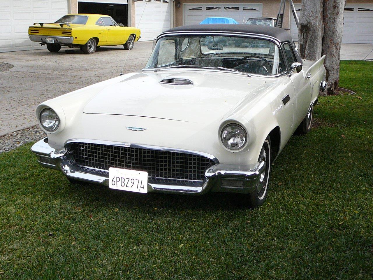 1957 Ford Thunderbird 312 V8 4V Auto VIN D7FH209762 Beautiful D Model Thunderbird with factory numbers matching 312 4V V8 with automatic transmission,power steering and front disc brake upgrade .Thunderbird has both Porthole hard top and soft top .Soft top has new canvas and rear plastic window Original fender skirts are fitted . SOLD Car ID#478 - Return to Index |